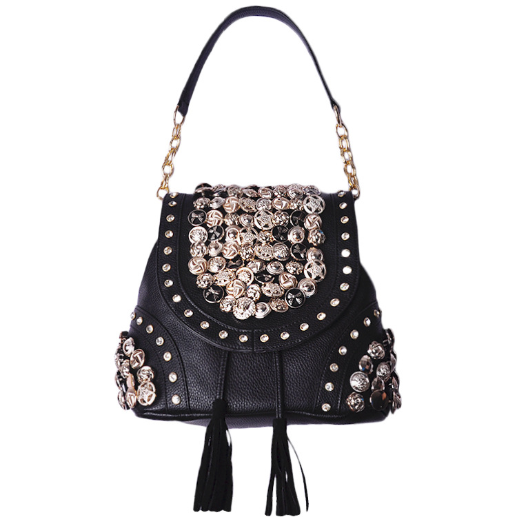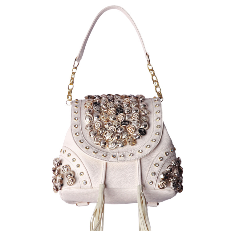 时尚进口野山羊皮女包单肩链条菱格小包